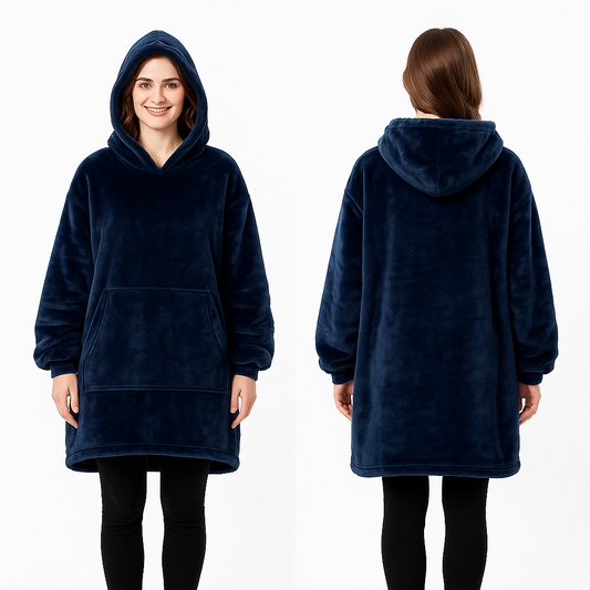 Electric Heated Hoodie Blanket with Sleeves – Wearable Heated Throw, Back Heat Panel, 3 Heat Levels, One Size, Blue