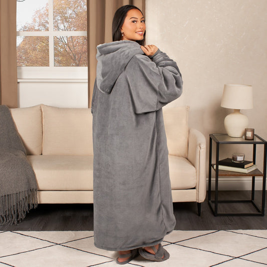 Electric Heated Hoodie Blanket – Adults Extra-Long, One Size, Charcoal Sherpa, USB Heated