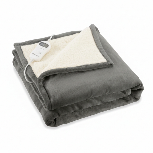 Rediffusion Cosy Snug Grey Luxury Heated Throw – 10 Heat Settings, 1–10h Timer, Fast Heat-Up, Washable Fleece