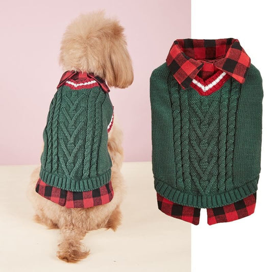 Perfect for Fall Winter Plaid Collar Cable Knit Dog Sweater Vest