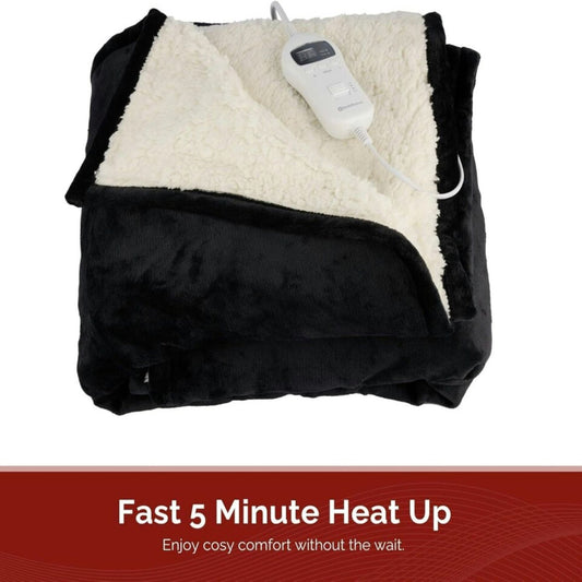 Rediffusion Cosy Snug Black Luxury Heated Throw – 10 Heat Settings, Timer, Fast Heat-Up, Washable Fleece