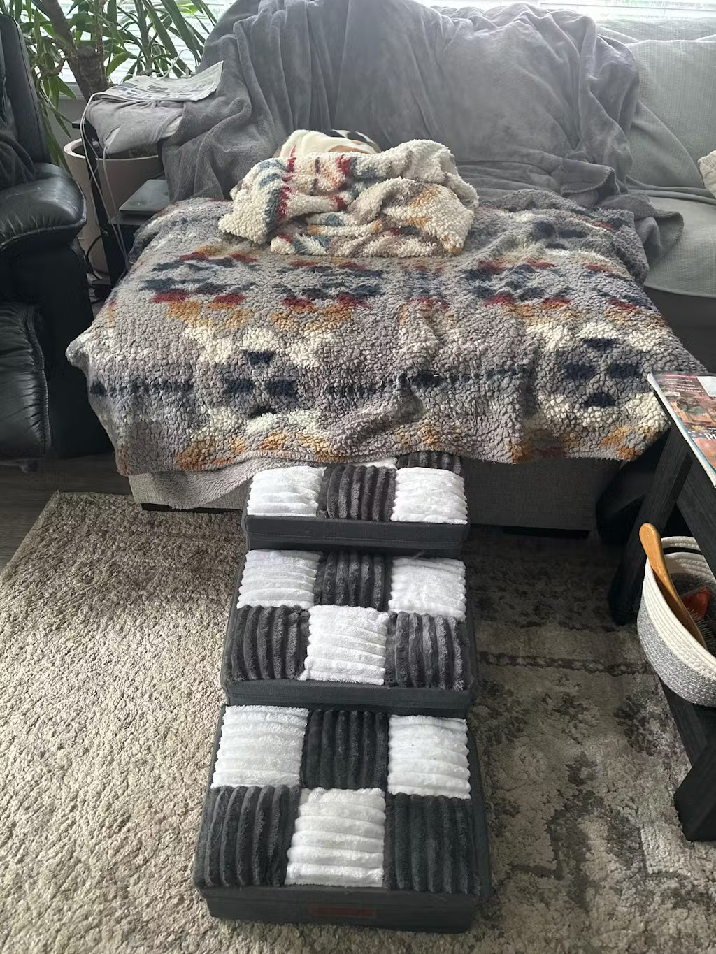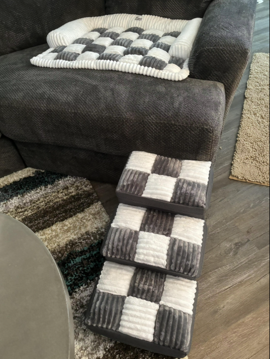 Upgrade your home and your pet’s comfort with these handcrafted plaid dog stairs — the perfect blend of safety, function, and modern design.
