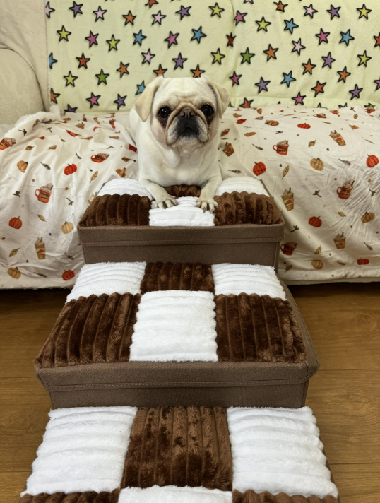 Each step is handcrafted with plush, cushioned padding in a chic plaid pattern, protecting joints and easing strain on knees and spines — especially important for puppies, senior dogs, or pets with mobility issues. The 3.9” rise per step ensures easy climbing, while the non-slip base keeps the stairs stable and secure.