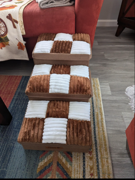Love these stairs, they match our mafooouk couch perfectly! Works great for our injured dog. Added storage is a bonus.