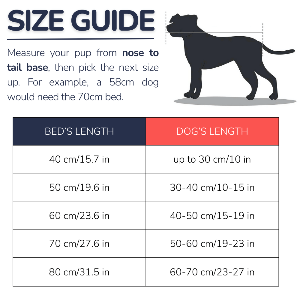 Donut Dog Bed – Calming Plush Round Washable Pet Sofa with Orthopedic Joint Support — Size Chart