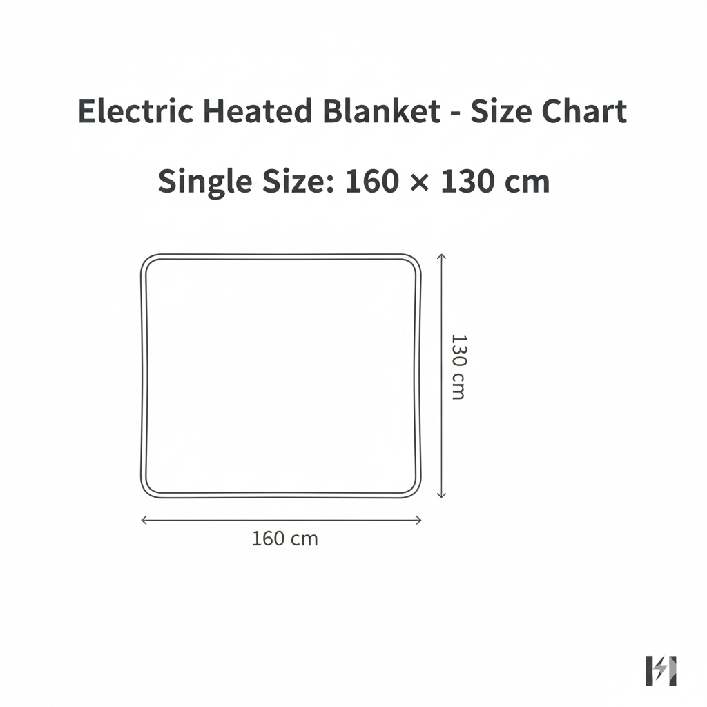 Electric Heated Throw Blanket – 10 Heat Settings, 1–10h Timer, Washable 220GSM Fleece, Digital Remote, 160×130cm — Size Chart