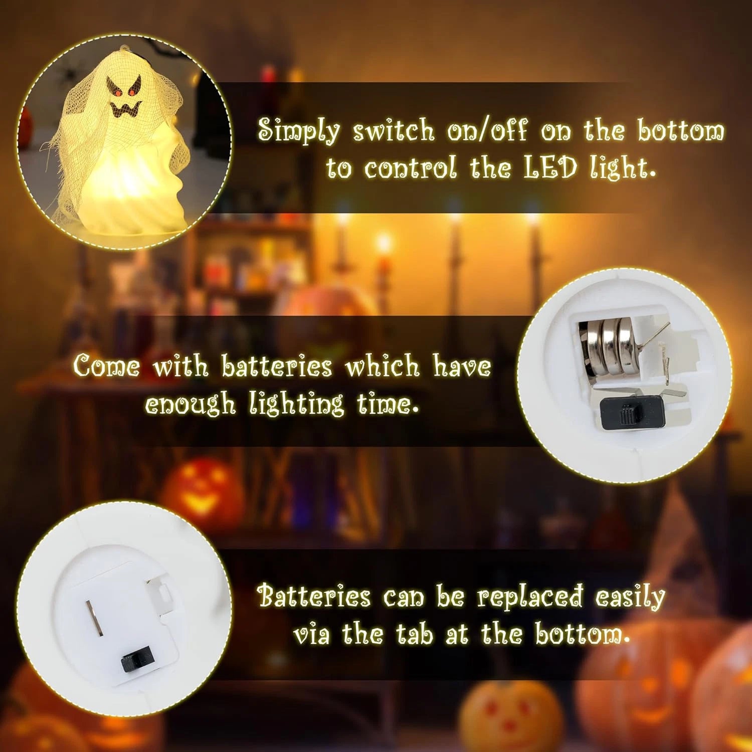 Lightweight and easy to hang, these LED ghost lights can be placed on porches, trees, windows, or party spaces. The battery-powered design makes them safe, reusable, and portable, adding an eerie glow wherever you need it.