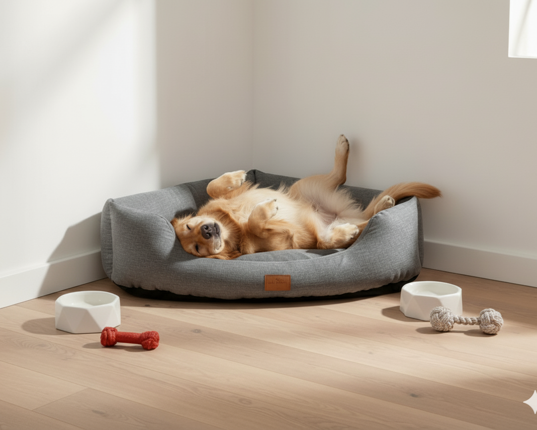 Turn an unused corner into your dog’s favourite spot with a triangular corner dog bed for large dogs that saves floor space without sacrificing comfort. The corner-friendly design creates a quiet, den-like nook, while raised rear bolsters offer head support and a snug, secure feel.