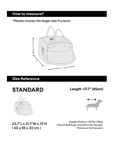 Dog Car Seat – Waterproof Breathable Booster Seat for Small & Medium Dogs, Washable Travel Bed (Pup Rover) — Size Chart